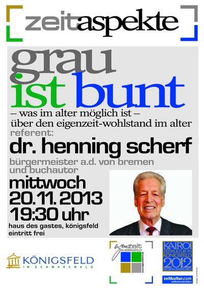 2006 veröffentlichte Scherf ein viel beachtetes Buch, in dem er für einen veränderten Umgang der deutschen Gesellschaft mit alten Menschen wirbt: „Grau ist bunt – was im Alter möglich ist“.